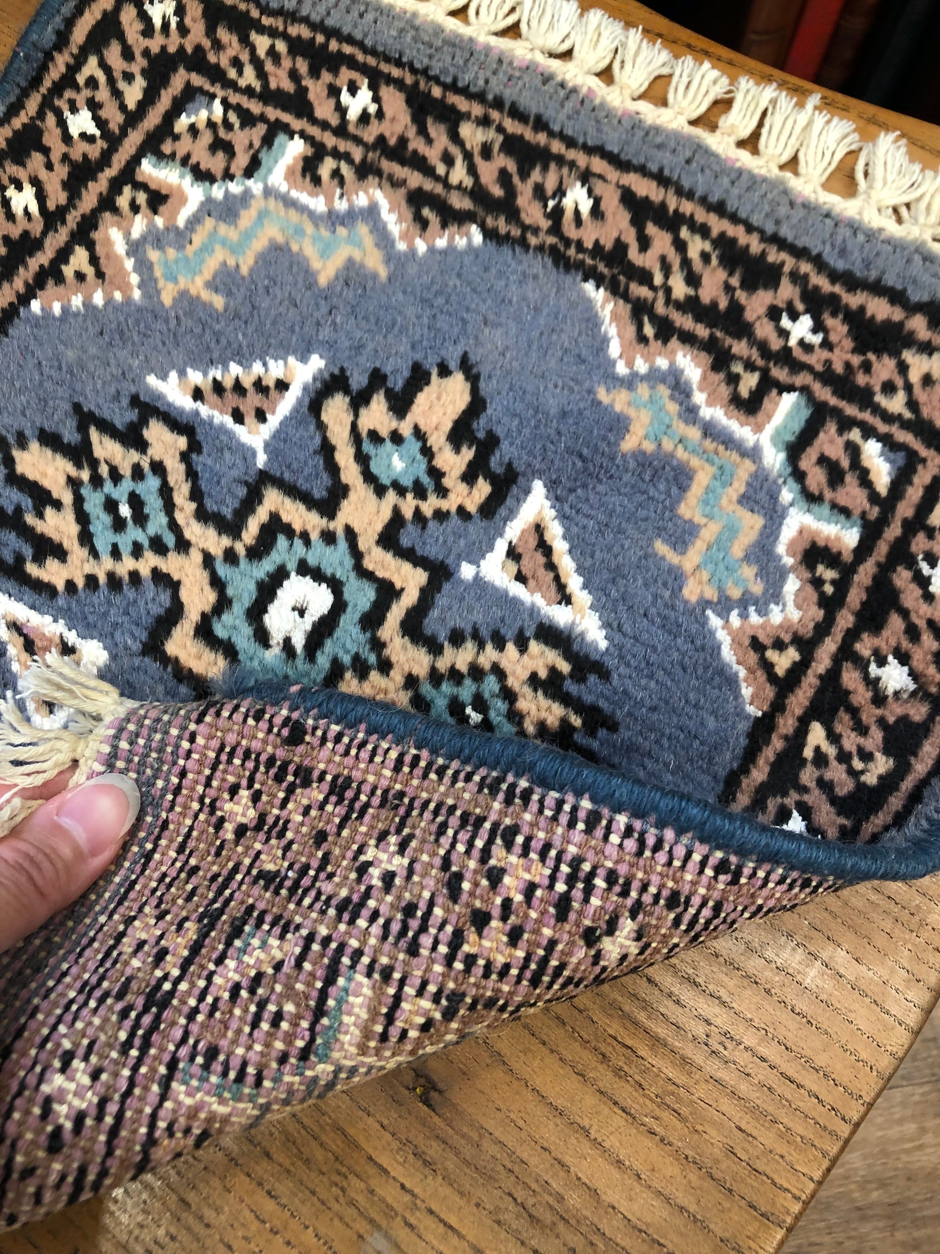 グレーがかったブルーのダルジャン柄ミニラグです*