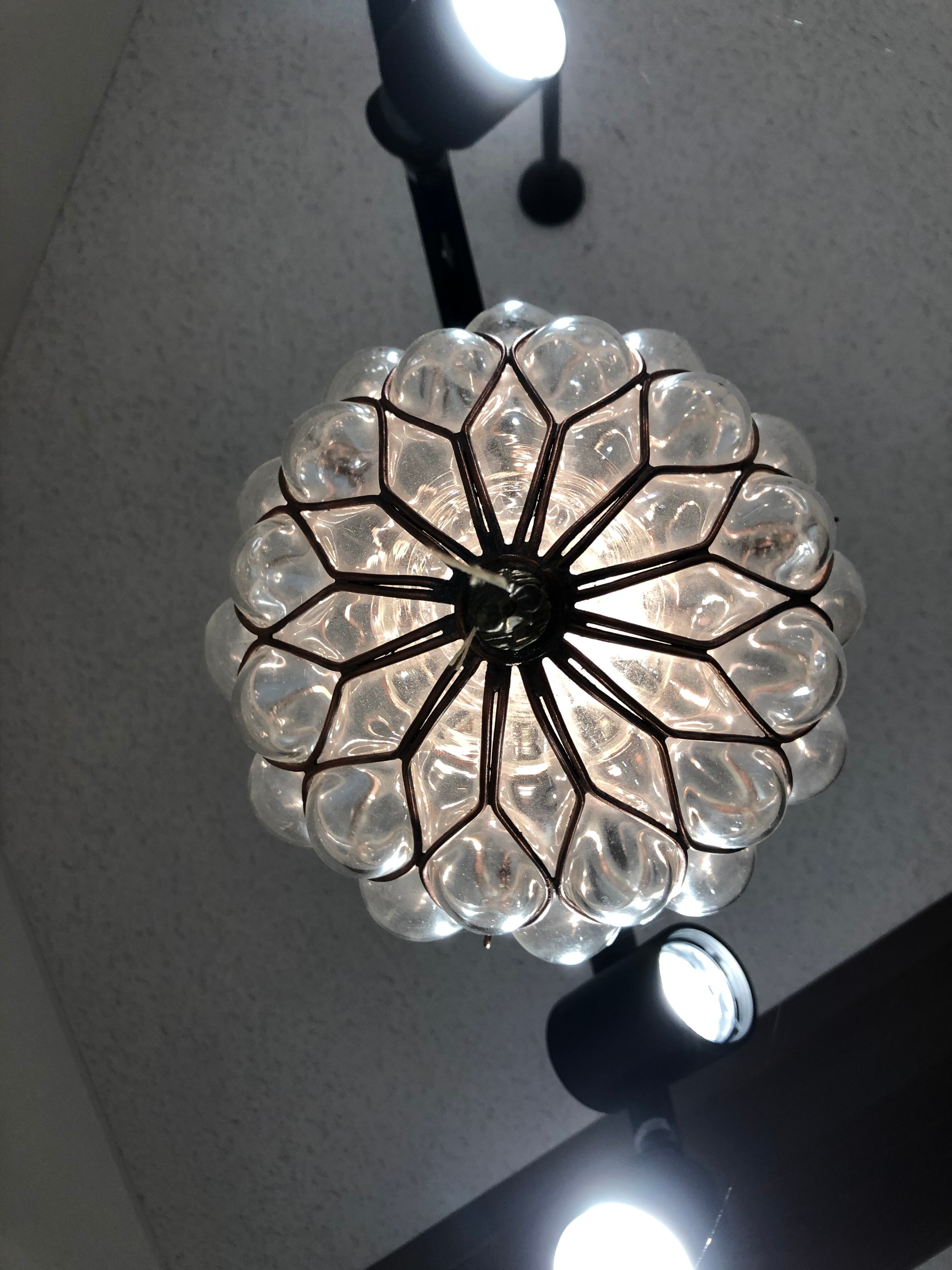 ガラスと錬鉄で作られたペンダントライト。