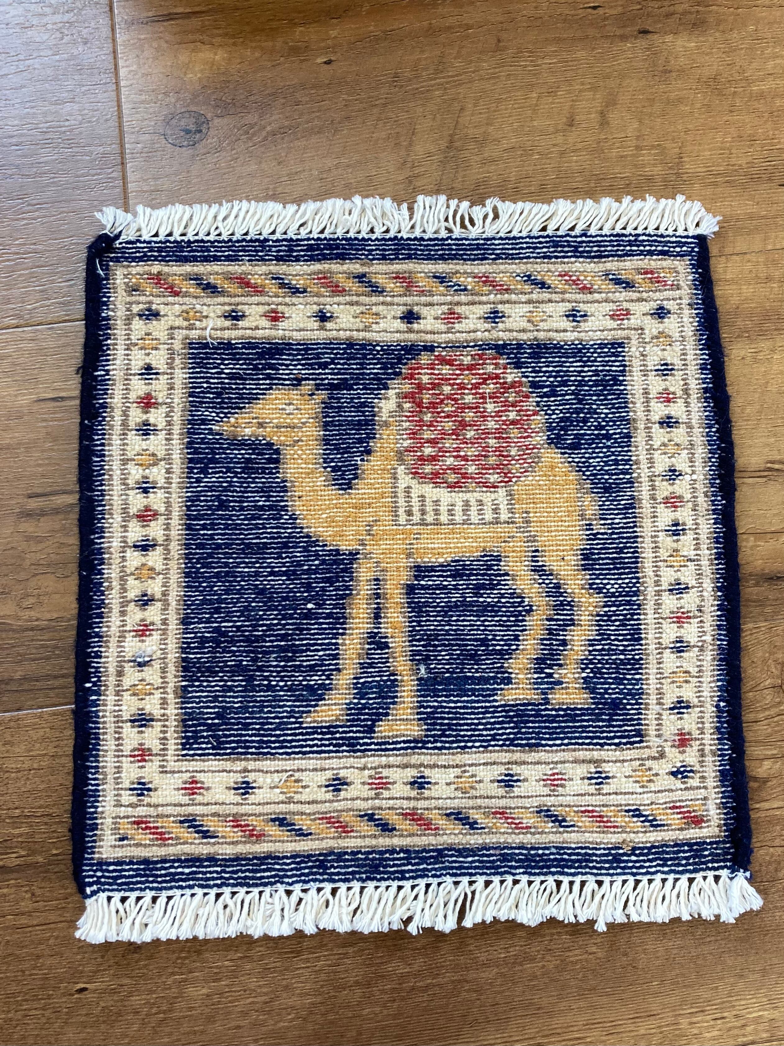ネイビーブルーにラクダが映える可愛らしいミニラグです*