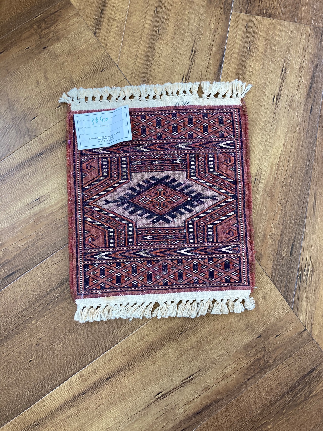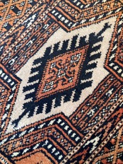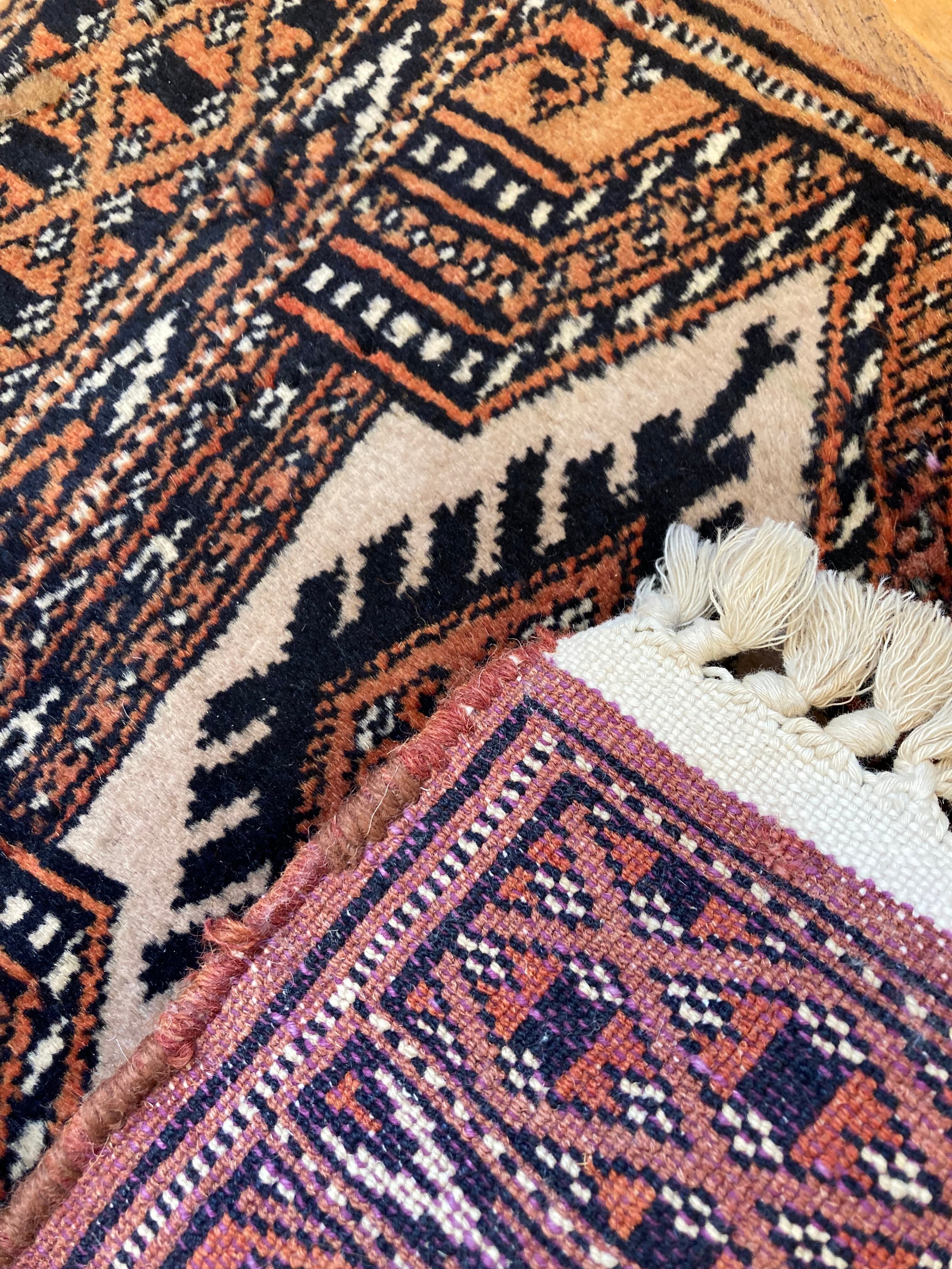 オレンジ・茶系の細かい模様が映えるミニラグです*