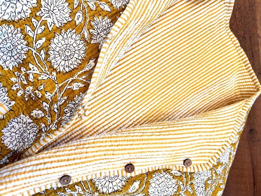 外側はオレンジがかったイエロー、内側は鮮やかな黄色のジャケット